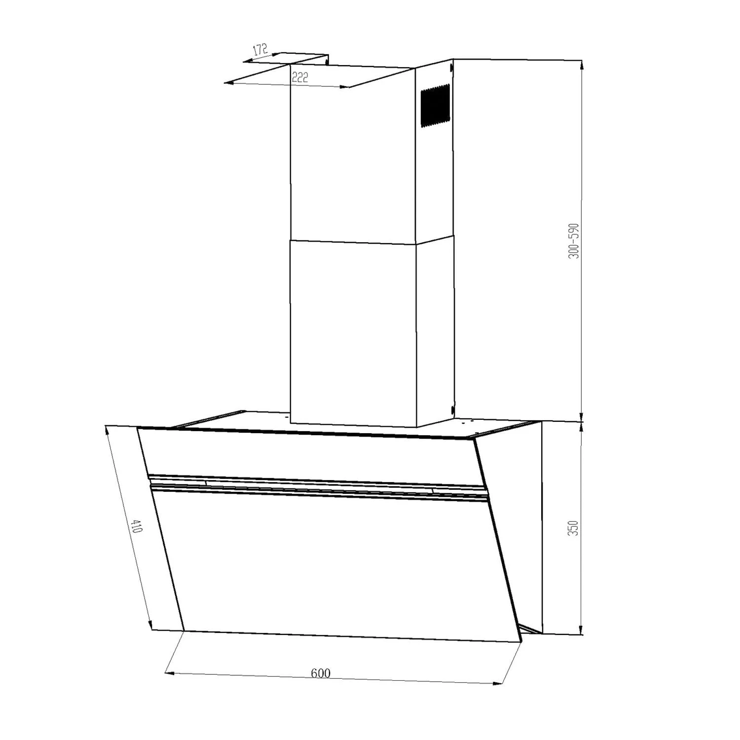 - Maße Kaminverblendung: ca. 22,2 x 30 – 59 x 17,2 cm (BxHxT)