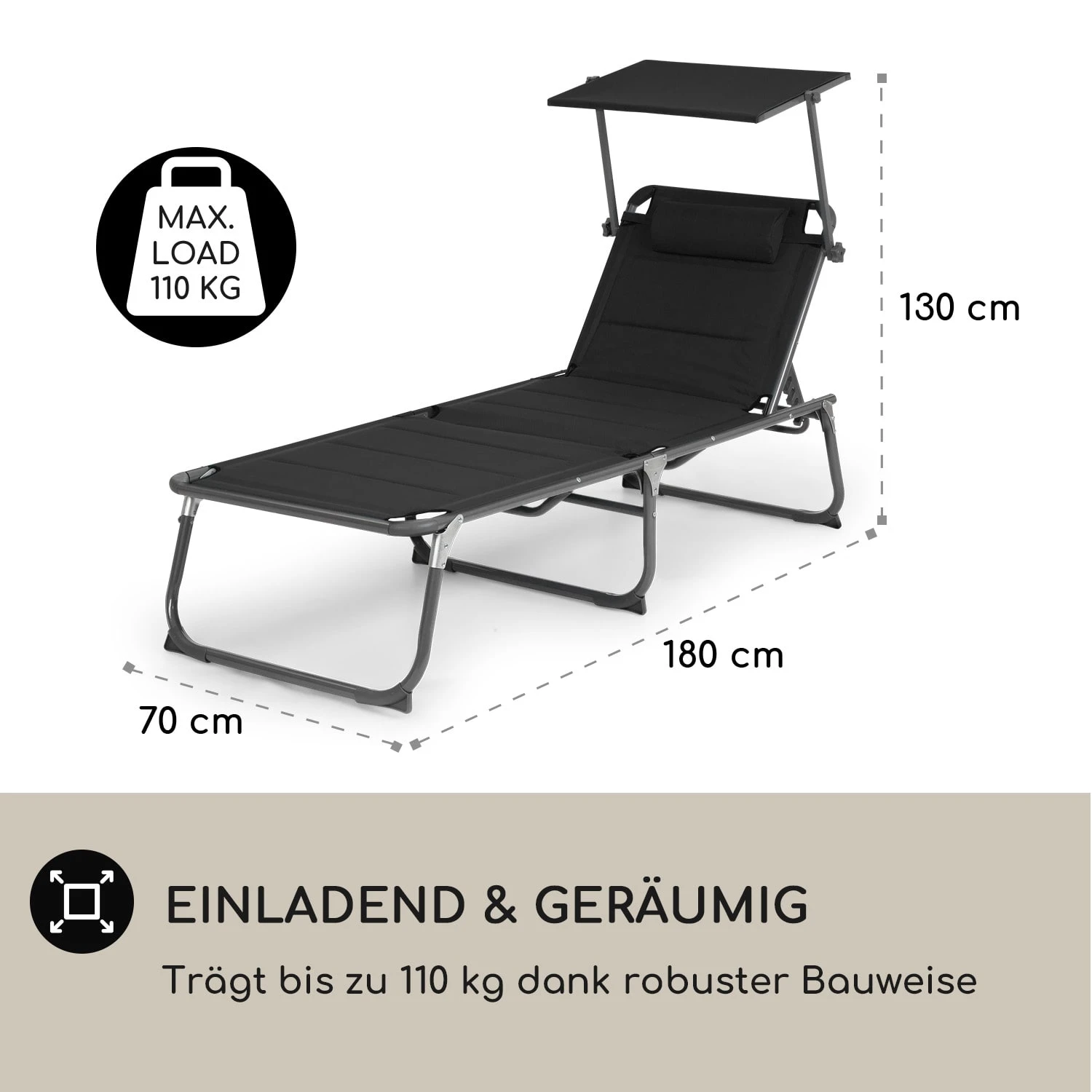 Verschafft dir einen bequemen Platz an der Sonne: Die blumfeldt Amalfi Sonnenliege mit gepolsterter Liegefläche, verstellbarer Sonnenblende und 5-stufiger Rückenlehne.