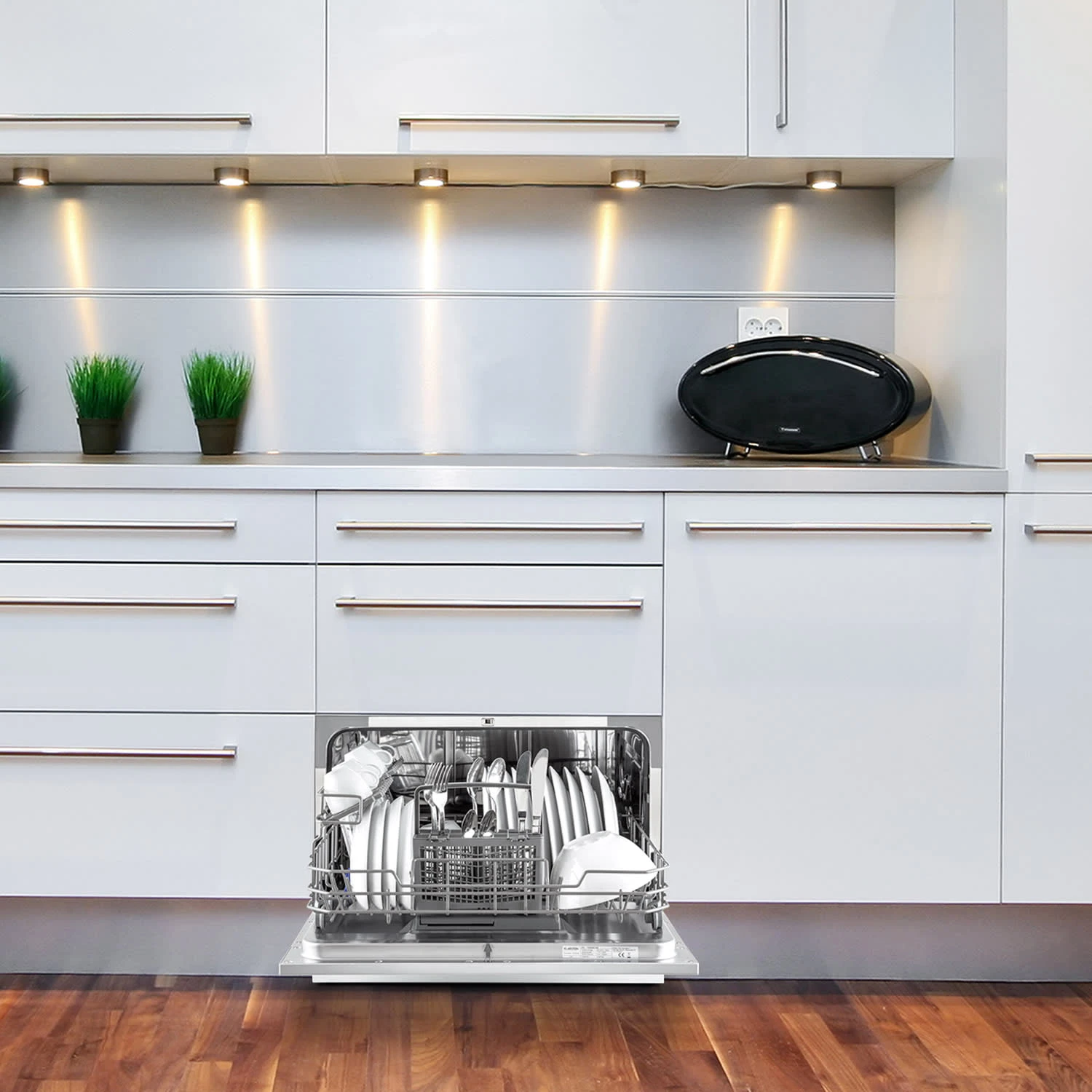 Die Klarstein Amazonia 6 Geschirrspülmaschine ist die neue Reinigungshilfe in deinem Haushalt! Bis zu 6 Maßgedecke finden in ihrem Inneren Platz. Mit 1380 Watt Leistung und sechs unterschiedlichen Programmen rückt die Amazonia 6 dem verschmutzen Geschirr zu Leibe. Alle Programme lassen sich schnell und einfach über die aufgeräumte Armatur mit drei Tasten einstellen. Eine eingebaute Halterung ermöglicht auch die unkomplizierte Reinigung von Wein- oder Sektgläsern. Die Amazonia 6 ist als Einbaugerät oder Tischgeschirrspüler nutzbar.