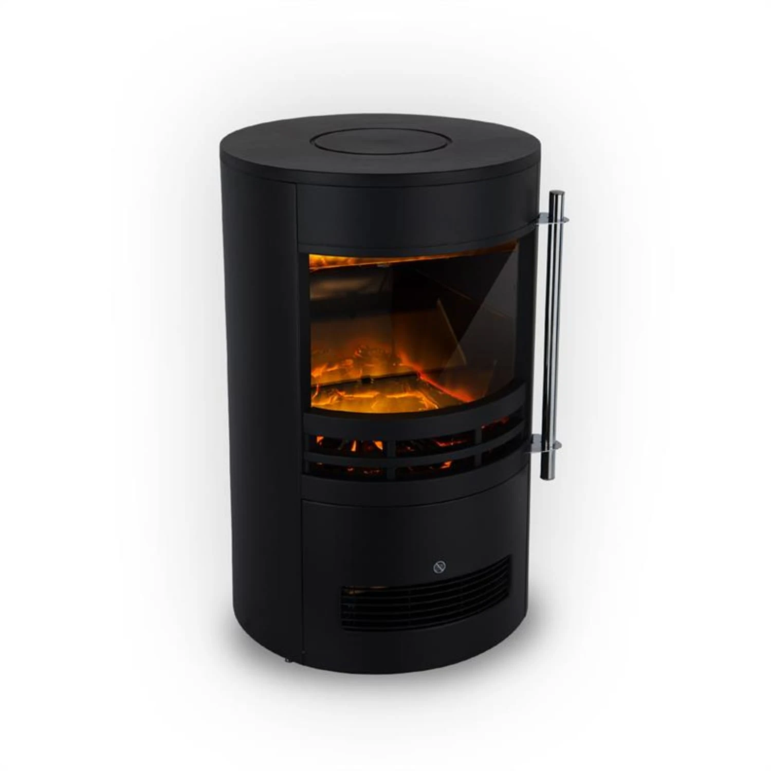 Das einzigartige Design des runden Kamins mit schwarzem Finish schafft überall eine gemütliche Umgebung. Dank des großzügigen Sichtfensters erhält man einen perfekten Blick auf die realistisch anmutenden Holzscheite mit 3D-Flame-Effect. Aus jeder Perspektive bekommt man durch die raffinierte 3D-Technik einen dreidimensionalen Eindruck von glühenden Holzscheiten und züngelnden Flammen. Ganz ohne echtes Feuer und lästigen Ruß vermittelt der Effekt den Anschein eines echten Kaminfeuers und zieht jeden sofort in seinen Bann.