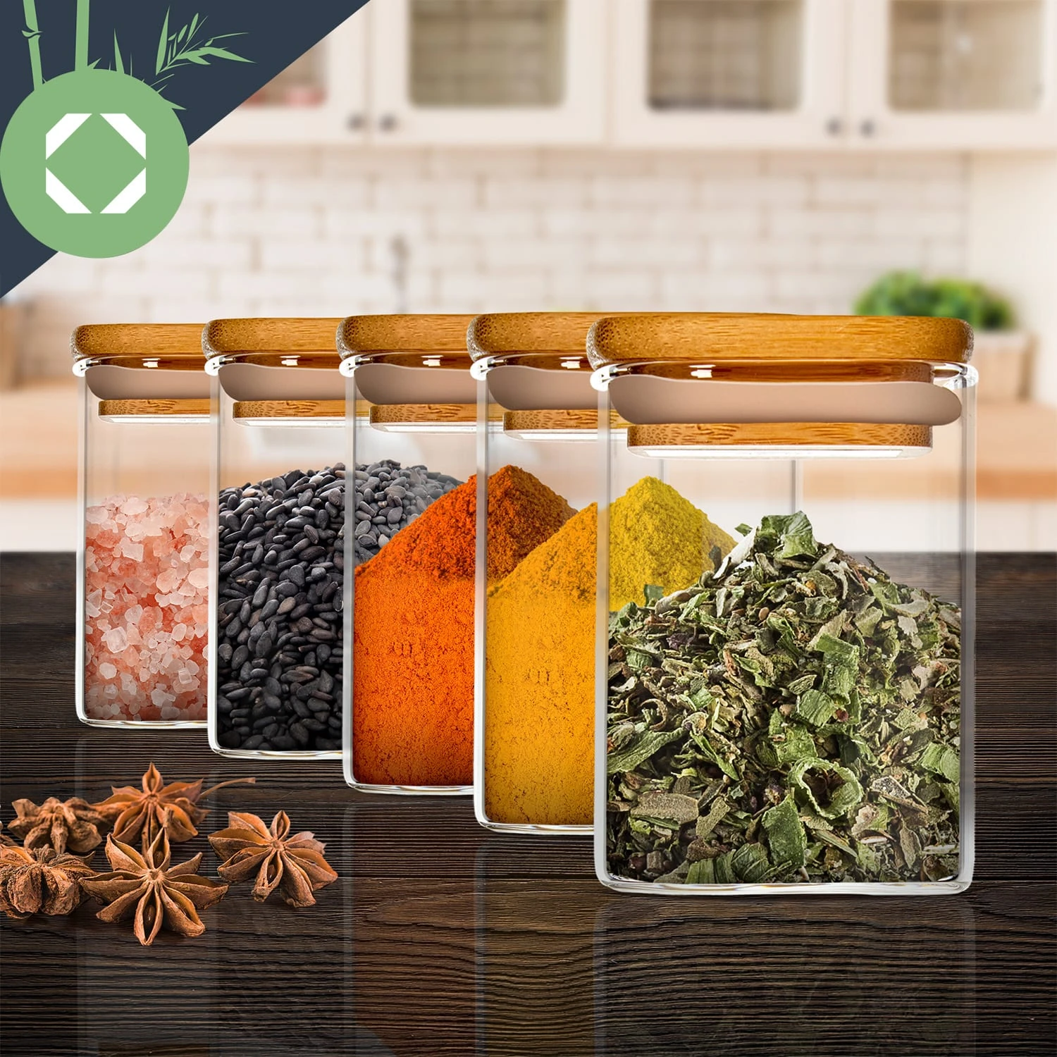 Gewürze sind etwas Wunderbares: Sie verzaubern nicht nur alle Speisen, sondern bringen meist exotische Farben mit sich. Fülle sie in ein eckiges Glas von Klarstein, nutze ihre Optik als einzigartige Dekoration und erlebe maximalen Komfort beim Würzen. Besonders stilvoll: Die Ecken der Gläser sind abgerundet. Dank der Deckel aus reinem Bambus mit Silikonring kannst du die Gläser fest und luftdicht verschließen, das erhält das Aroma der Gewürze langfristig. Natürlich kannst du auch Tees, Backwaren oder Süßigkeiten mit den Gläsern schön in Szene setzen.