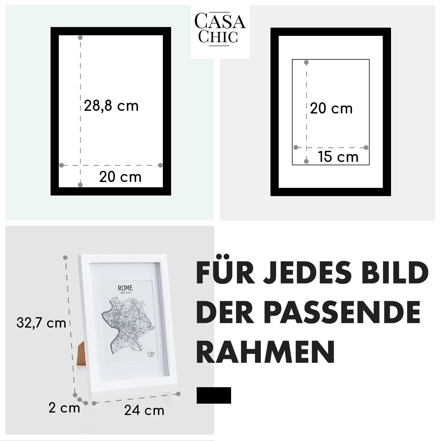 Der ansprechende Everton Bilderrahmen von Casa Chic by blumfeldt aus Echtholz bringt deine DIN-A4 großen Fotos und Bilder sowohl im Hoch- als auch im Querformat ideal zur Geltung. Bleibe flexibel und gestalte wunderschöne Wandcollagen oder arrangiere deine Lieblingsfotos auf dem Sideboard oder im Regal. Das mitgelieferte Passepartout überlässt dir die Wahl des passenden Bildausschnitts. Ein schlichtes Rahmenprofil und die Frontscheibe aus Echtglas sorgen für Eleganz und besten Schutz.