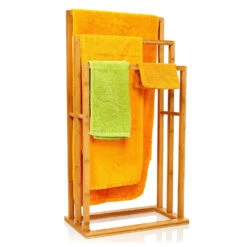 Handtuchhalter 3-fache Handtuchstange 42x80x24 Cm Treppenoptik Bambus