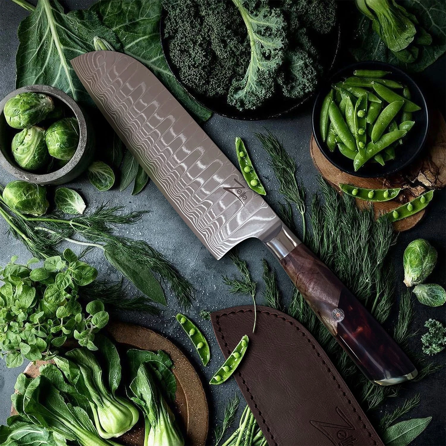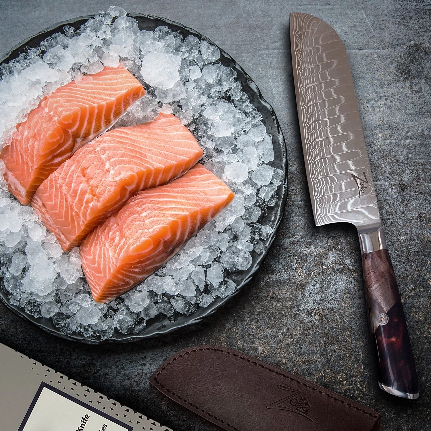 Das Santokumesser kommt ursprünglich aus Japan, hat sich allerdings schon längst in der internationalen Küche bewährt. Das Küchenmesser eignet sich wunderbar für die Zubereitung von Wok-Gerichten oder Sushi. Überall, wo ein feiner Schnitt von Fleisch, Fisch, Gemüse und Kräutern gewünscht ist, ist das 7″ Santokumesser die perfekte Wahl.