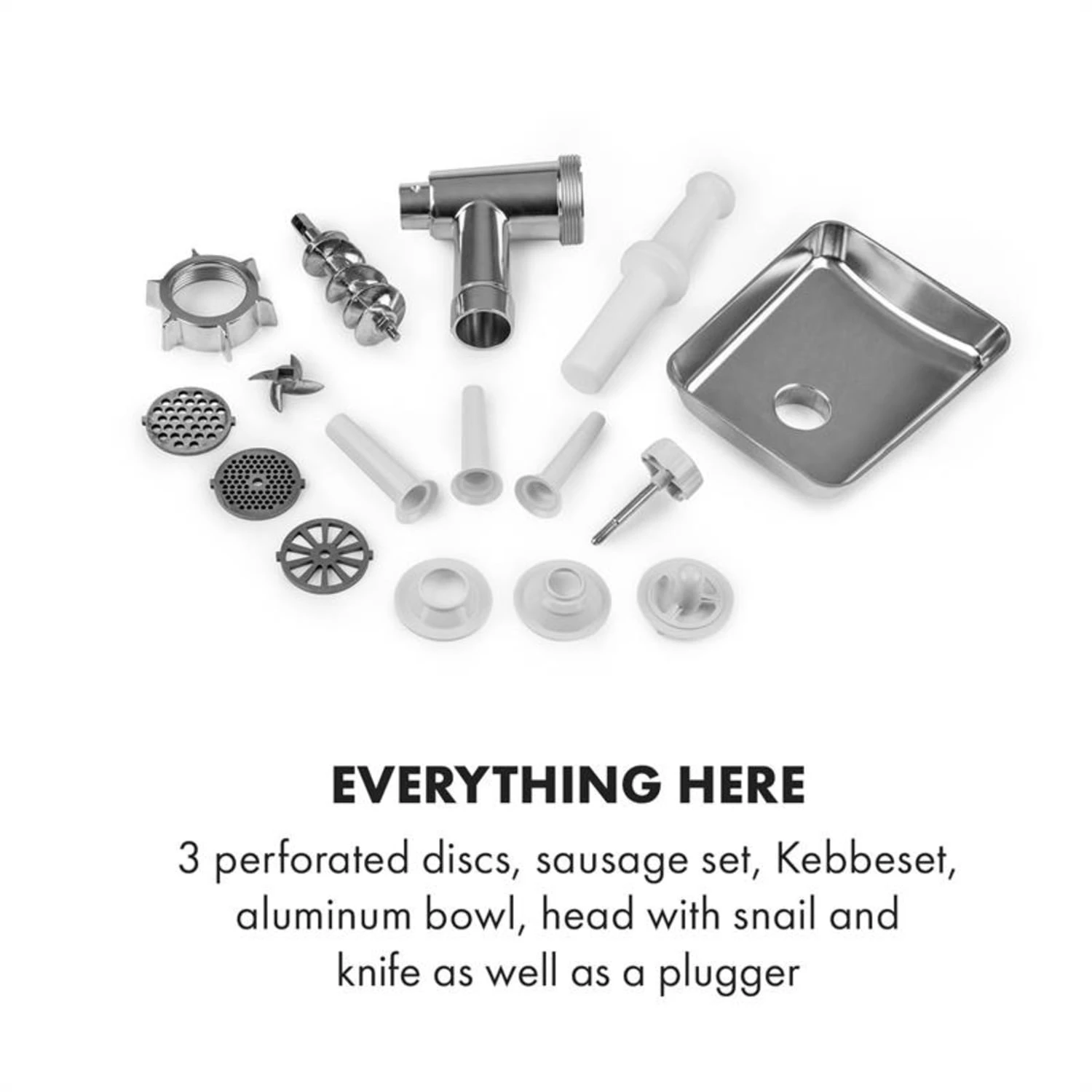 Hier geht es nicht nur um die Wurst: Der Klarstein Kraftprotz Fleischwolf zerkleinert Fleisch zu leckeren Hack- und Wurstspezialitäten, wie du es dir wünschst.