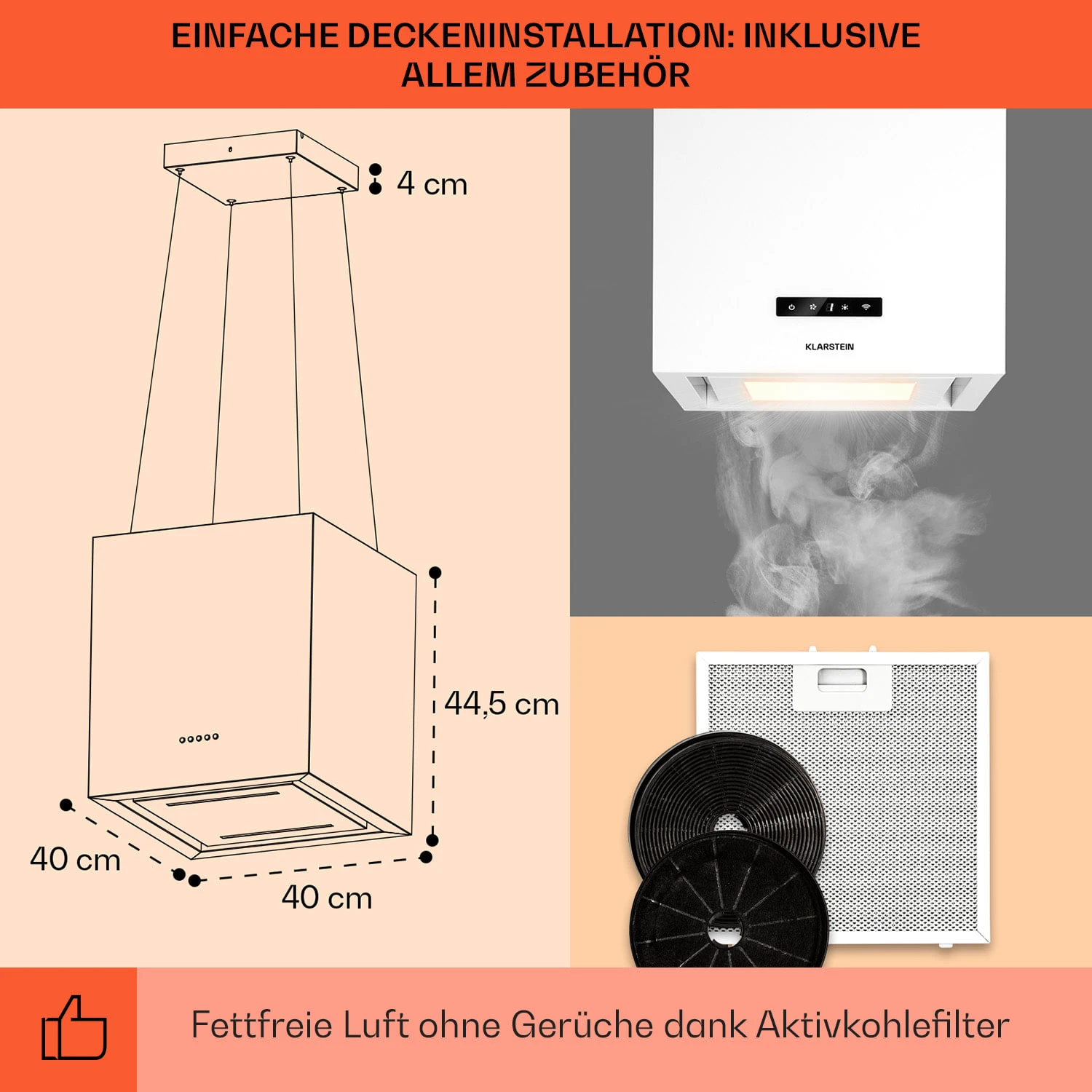- Maße Deckenplatte: ca. 24 x 4 x 24 cm (BxHxT)