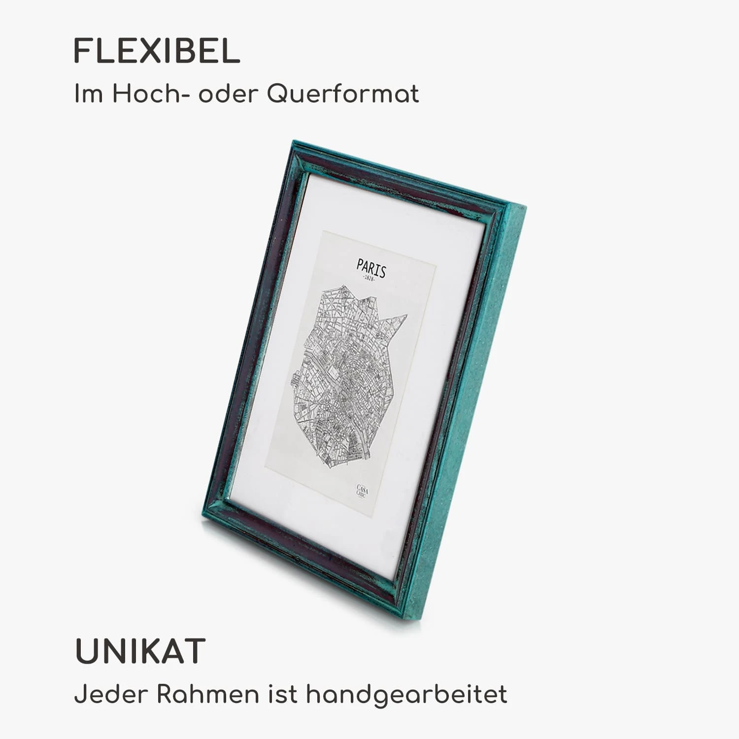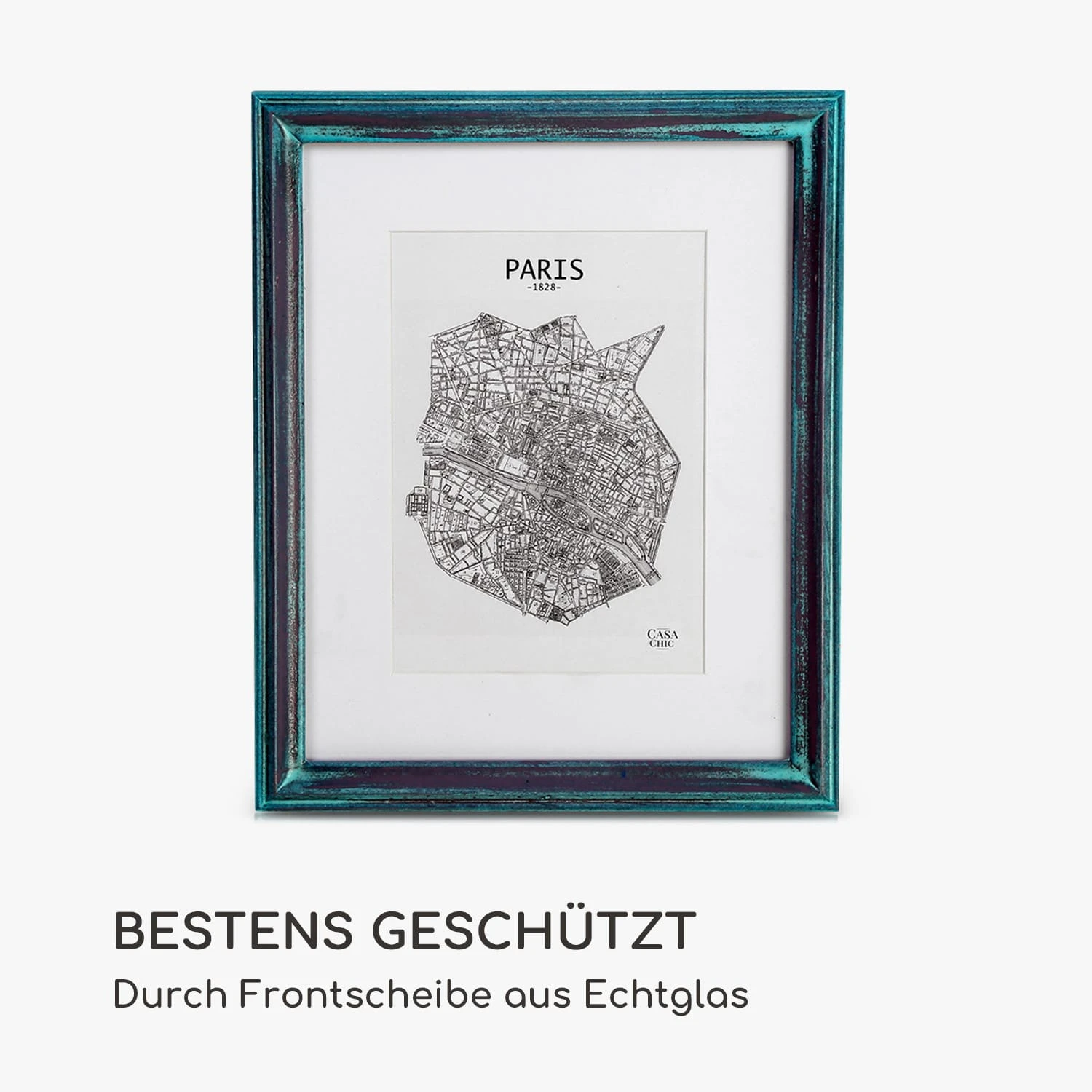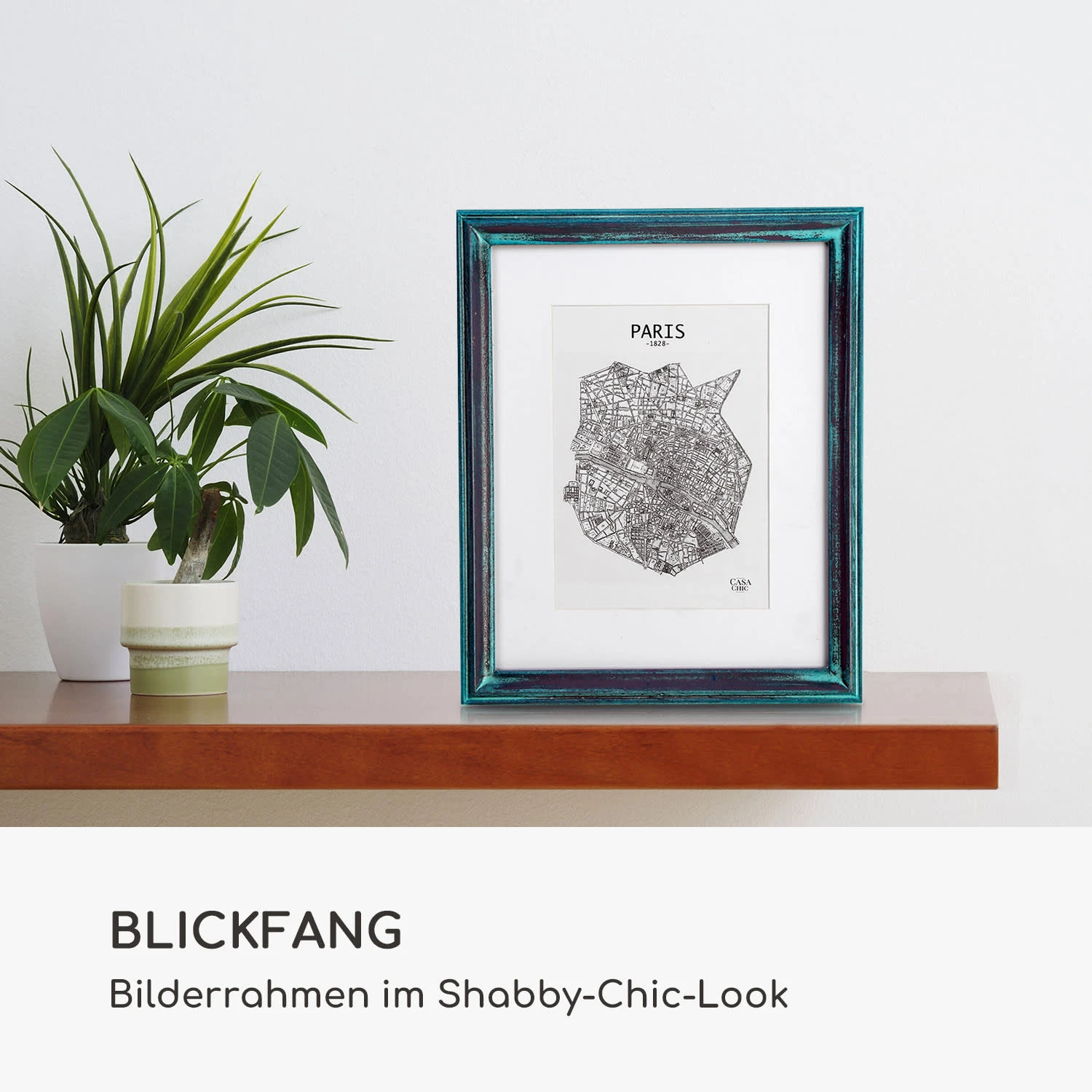 Jeder Rahmen ist ein Unikat: Der Lancaster Bilderrahmen von Casa Chic by blumfeldt aus edlem Pinienholz im Shabby-Chic-Look ist handgearbeitet und bringt deine Fotos und Bilder sowohl im Hoch- als auch im Querformat ideal zur Geltung. Bleibe flexibel und gestalte wunderschöne Wandcollagen oder arrangiere deine Lieblingsfotos auf dem Sideboard oder im Regal. Das mitgelieferte Passepartout überlässt dir die Wahl des passenden Bildausschnitts. Das gleichmäßig breite Rahmenprofil und die Frontscheibe aus Echtglas sorgen für Eleganz und besten Schutz.