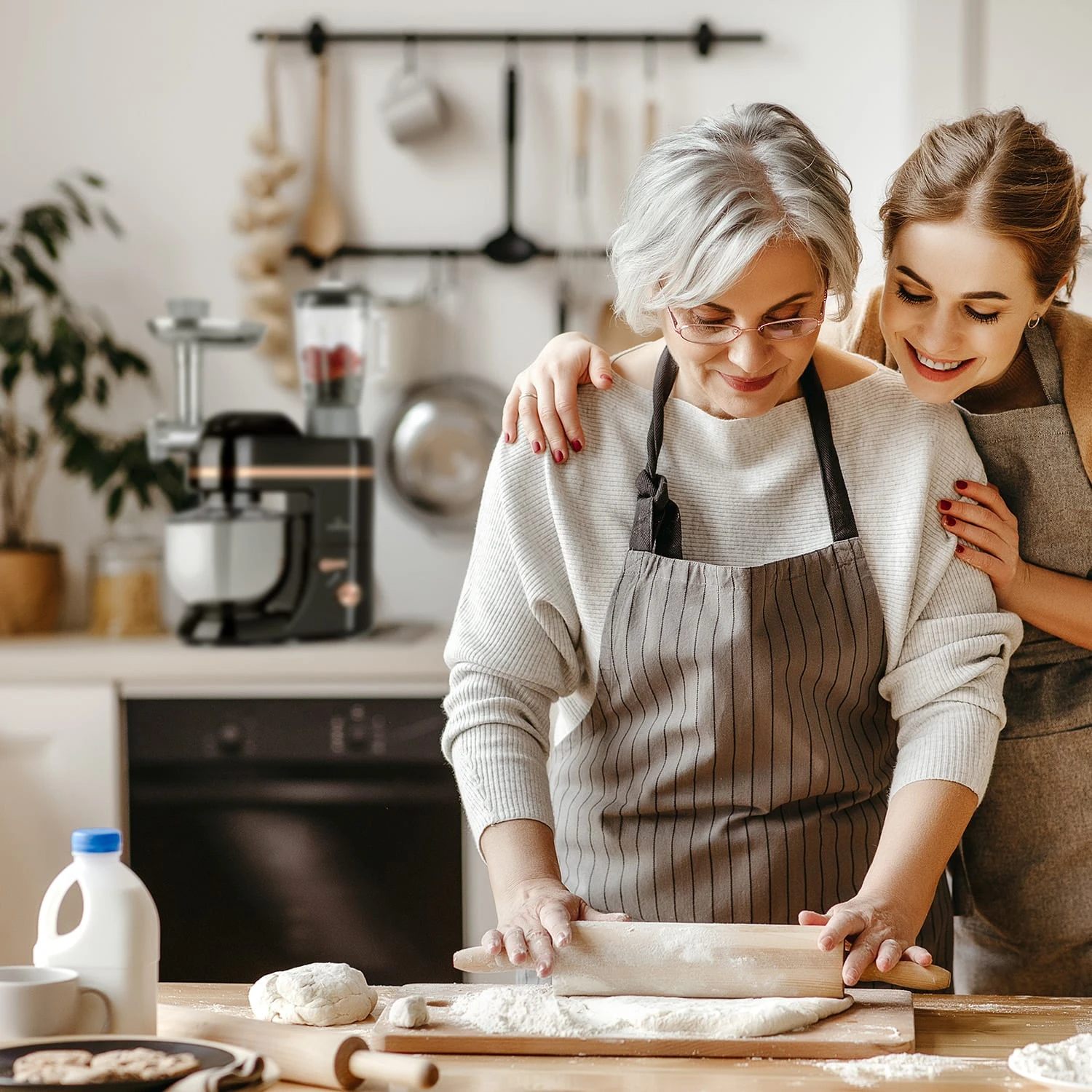 Die Klarstein Lucia Elegance 3-in-1 Küchenmaschine ist das Multitalent für die Küche: mit einer Rührmaschine zum Kneten, Vermengen oder Aufschlagen, einem Mixer zum Zerkleinern und Vermischen sowie einem Fleischwolf für frisches Hack, selbstgemachte Wurst oder leckere Pasta-Vielfalt. Mit 2000 Watt, 6 Geschwindigkeiten und dem bewährten planetarischen Rührsystem von Klarstein schafft sie spielend alle Herausforderungen der modernen Küche. Auch große Mengen sind kein Problem: dank der 5-Liter-Edelstahl-Rührschüssel und dem 1,5 Liter fassenden Mixerkrugs. Optisch kann sich die Küchenmaschine ebenfalls sehen lassen: Mit ihrem kompakten Design-Gehäuse macht die Klarstein Lucia Elegance Rührmaschine eine Top-Figur in deiner Küche.