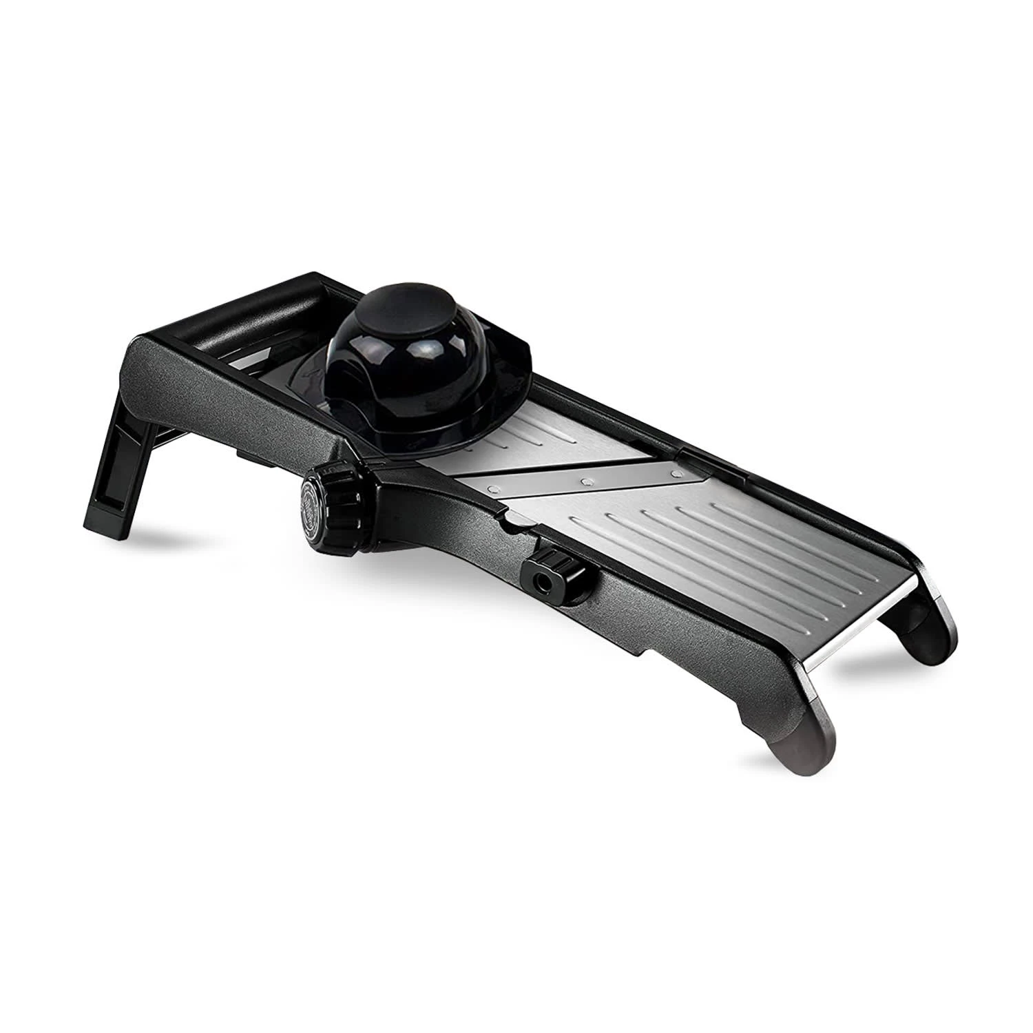 Du willst Zeit bei den Vorbereitungen in der Küche sparen und dein Gemüse schnell, einfach und sicher zerkleinern? Dann ist der Mandoline Küchenhobel von Gramercy by Klarstein genau dein neuer Lieblingsküchenhelfer. Durch seine ultrascharfe Klinge gleitet er auch durch harte Gemüsesorten wie Kartoffeln oder Kürbisse leicht und präzise. Dabei musst du keine Angst um deine Finger haben, denn der Mandoline Gemüseschneider kommt mit praktischem Gemüsehalter und schnittfesten Sicherheitshandschuhen zu dir nach Hause. Am seitlichen Drehknopf stellst du ganz bequem die gewünschte Scheibendicke von hauchdünn bis 9 mm ein. Zusätzlich kannst du mit dem Mandoline dein favorisiertes Gemüse auch in formschöne Julienne-Streifen bringen. Für die sichere und komfortable Reinigung wird eine passende Reinigungsbürste direkt mitgeliefert. Anschließend kannst du die Mandoline Schneidemaschine zusammenklappen und platzsparend in Schublade oder Schrank verstauen.