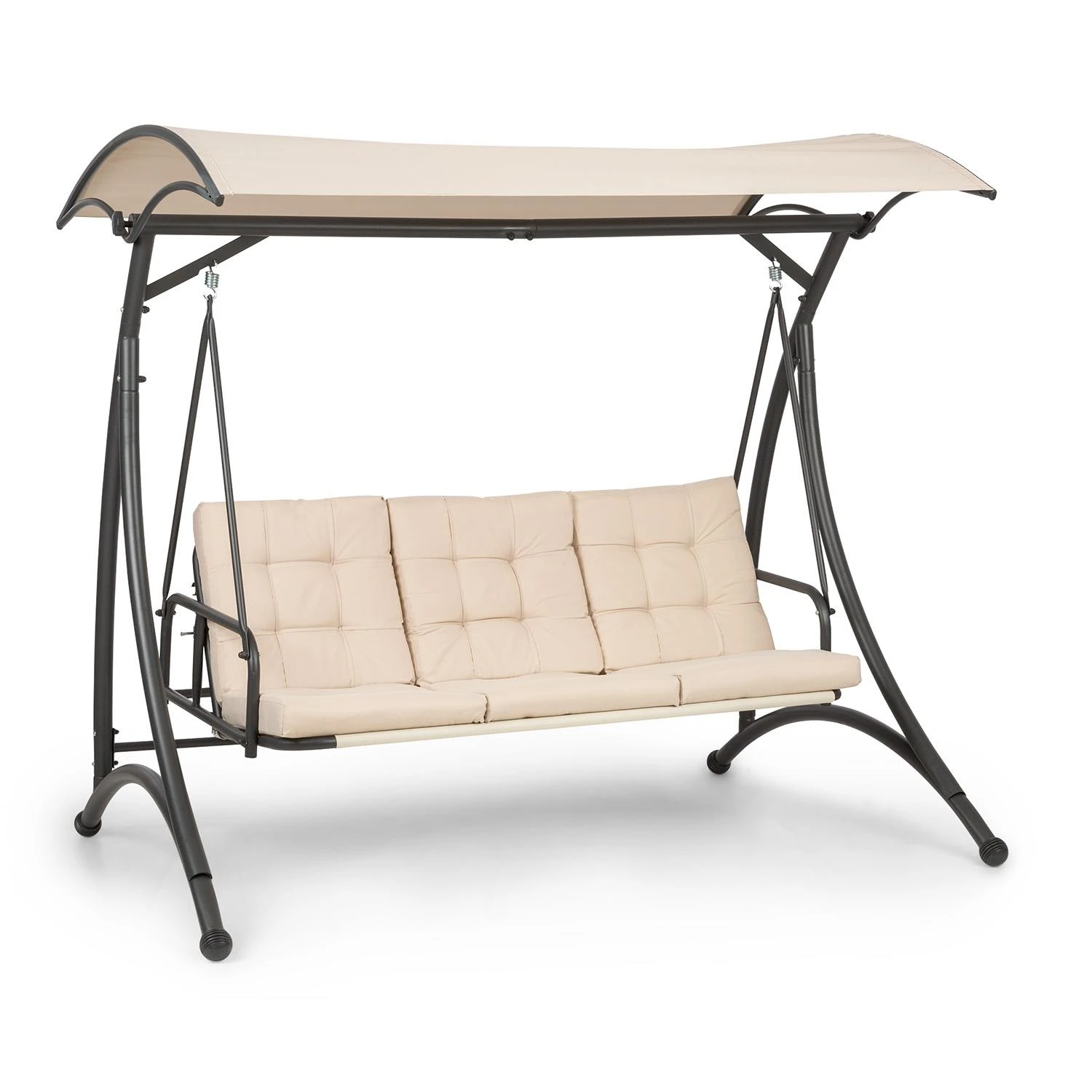 Die solide Stahlkonstruktion steht, dank 36 kg Eigengewicht, jederzeit stabil und sicher auf dem Boden. Das gewölbte Dach der Gartenschaukel schützt dich vor direktem Sonnenschein und den neugierigen Blicken der Nachbarn. Die Polyesterbeschichtung der Bezüge ist leicht zu reinigen, sodass deine Schaukel lange wie neu aussieht. Egal ob allein, zu zweit oder zu dritt die blumfeldt Marbella Hollywoodschaukel ist der Dreh- und Schaukelpunkt in deinem Garten oder auf deiner Terrasse.