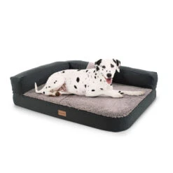 Mit unserem Brunolie Odin Hundesofa tust du deinem besten Freund etwas Gutes für Körper und Seele. Das orthopädische Hundebett passt sich der Form des Körpers optimal an und sorgt so für eine Druckentlastung im Bereich der Wirbelsäule und der Gelenke. Das 3-Schicht-System macht das Bett dabei zur Premiumruhestatt deines Hundes. Die erste Schicht aus 6 – 8 cm Komfortschaum isoliert zum Boden und hält Kälte von deinem Liebling fern. Der viskoelastische Memory-Schaumkern aus besonders dichtem Material passt sich nicht nur der Körperform des Hundes an und sorgt so für eine Entlastung von Gelenken und Wirbelsäule, er verhindert auch effektiv Kuhlenbildung und Durchliegen des Odin Hundesofas. Die dritte Schicht aus hochwertiger Watte liegt direkt unter dem Bezug und sorgt für Luftzirkulation und Ableitung von Wärme im Sommer. Dadurch wird ein Hitzestau vermieden und ein optimaler Liege-Komfort an warmen Tagen ermöglicht. Dank der weichen, abnehmbaren Lehnen und dem wendbaren Kuschelkissen findet deine Fellnase außerdem viele Möglichkeiten sich besonders einzukuscheln oder den Kopf abzulegen – eben ein richtiger Thron für deinen Vierbeiner.