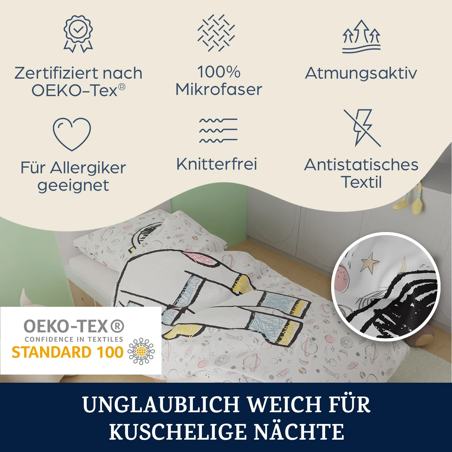 - Hygienisch waschbar bei bis zu 90 Grad