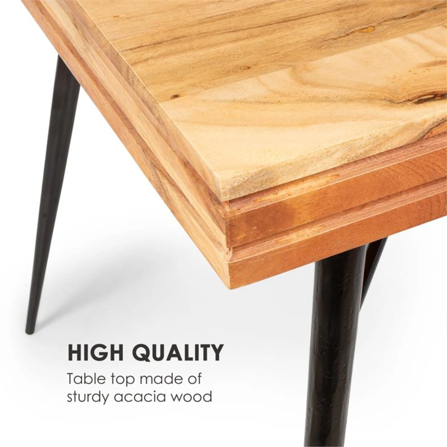 Hier kommen Stil und Stabilität zusammen: Dank des Materialmixes aus einem schwarzen Eisengestell und einer beständigen Tischplatte aus Akazienholz weiß der Besoa Vantor Esstisch in allen Belangen zu überzeugen. Seine großzügigen Abmessungen von 175 x 78 x 90 cm machen ihn zur festen Größe in jedem Esszimmer und bieten Platz für bis zu 6 Personen. Dank seiner stilvollen Präsenz und der offensichtlichen Funktionalität vermag er es, regelmäßig Freunde und Familie um sich zu versammeln – egal ob zu den täglichen Mahlzeiten oder zur geselligen Runde beim neuesten Brettspiel. Die Tischhöhe von 78 cm sorgt darüber hinaus für einen hohen Sitzkomfort und ein allgemeines Wohlbefinden bei Tisch. Das schlichte Industrial-Design verleiht dem Vantor Esstisch zudem seinen unvergleichlich zeitlosen Charme.