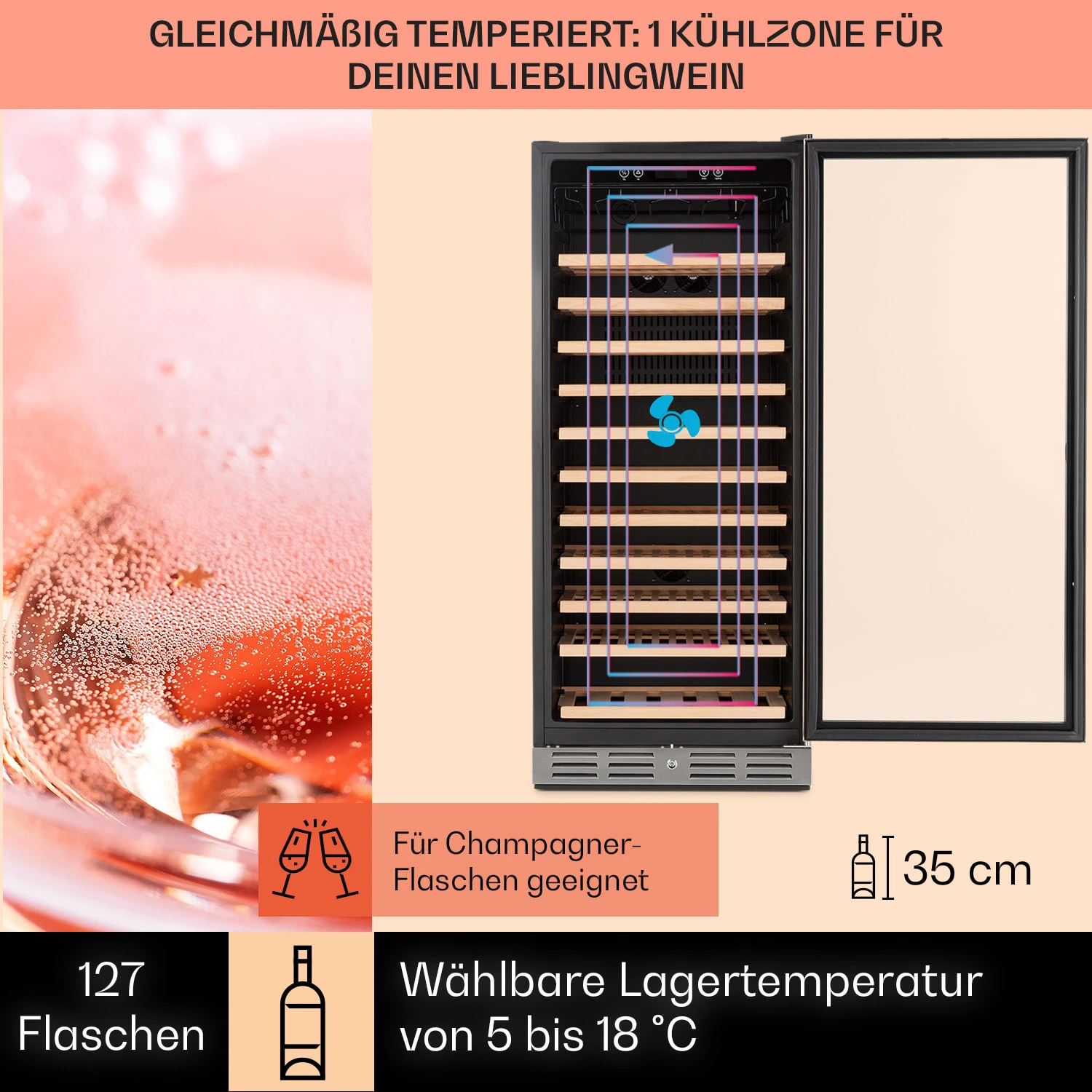 Weinlagerung der Extraklasse: Der Großraum-Weinkühlschrank Vinovilla Grande 127 Built-in Uno von Klarstein bringt mit Klasse und Stil edle Weine auf die perfekte Trinktemperatur.