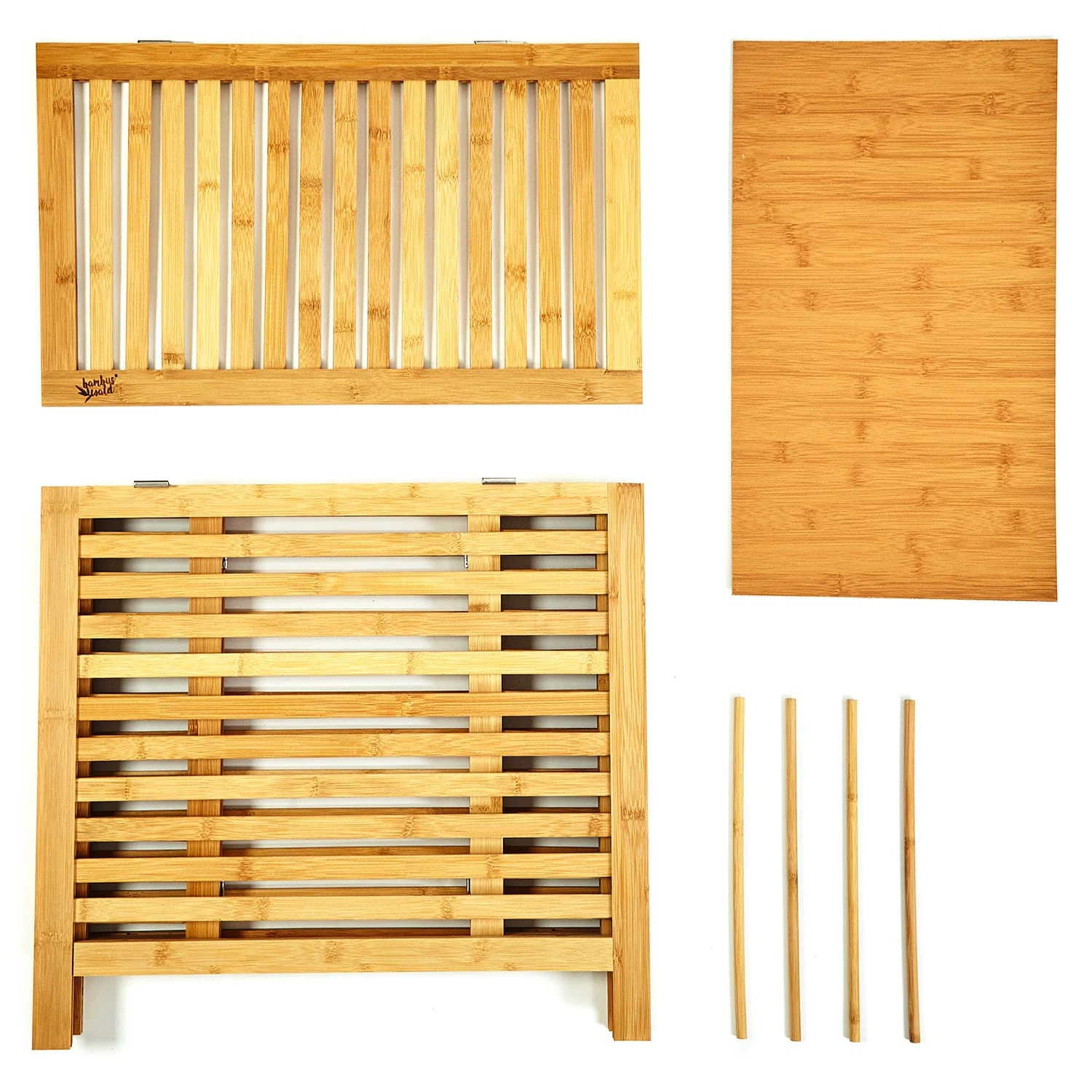 Keine Lust mehr auf Wäschechaos im Bad, im Schlafzimmer oder Kinderzimmer? Unsere blumfeldt Wäschetruhe sorgt im Handumdrehen für Ordnung und ist ganz nebenbei noch ein echter Blickfang. Der stylische Wäschekorb mit praktischen Lüftungsschlitzen ist komplett aus Bambus gefertigt. Durch seinen klappbaren Deckel kannst du ihn auch ideal als Ablagefläche für Handtücher oder frische Kleidung nutzen.